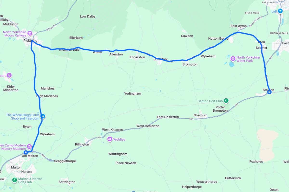 - Askham Bryan to Askham Bar Copmanthorpe diversion route via A64, A1(M), A59 and A1036