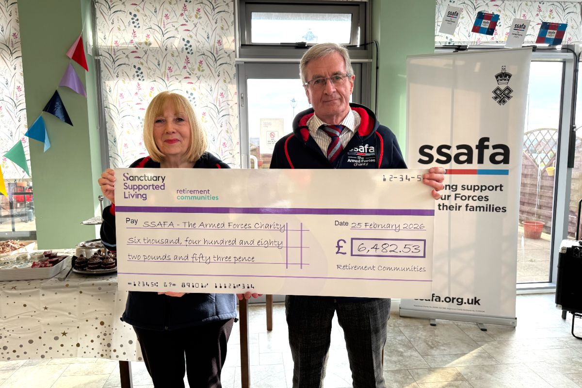 A giant cheque was presented at a special event at Jazz Court in Scarborough - part of Sanctuary Supported Living - bringing together residents, staff and local SSAFA volunteers.