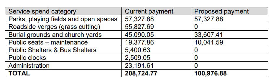 Funding for grass cutting at roadside verges would be cut entirely from the current £55,000, while ‘administration’ which is currently allocated £23,000 would also receive nothing, if the plan is approved.