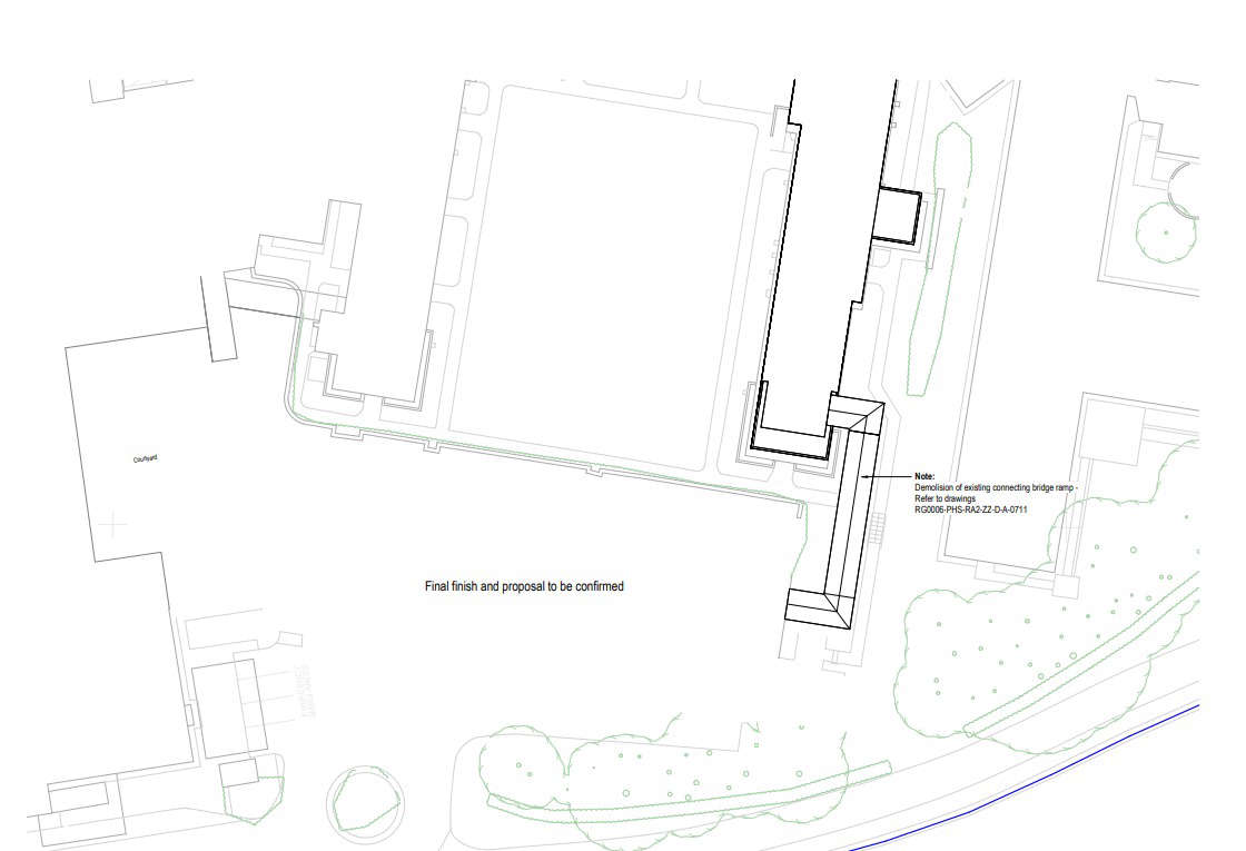 The site for the new building is vacant and previously accommodated a construction site compound and prior to its relocation, the helipad.