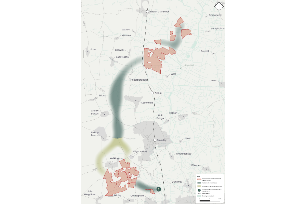 The southern site would be located southwest of the A1079. The project would connect to the planned Wanlass Beck substation, which is an extension of the existing Creyke Beck substation.