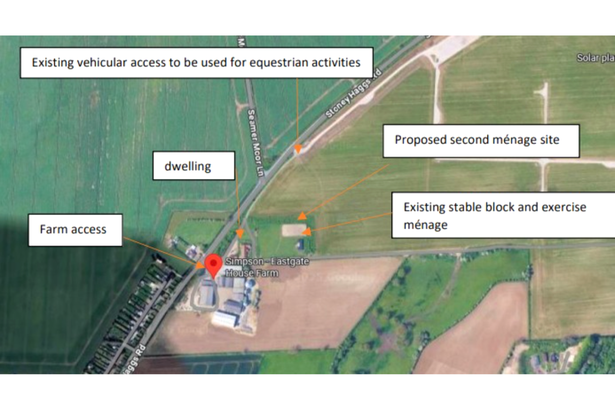 The construction of an equine ménage has been proposed by the owners of Eastgate House Farm at Stoney Haggs Road, in Seamer, near Scarborough.