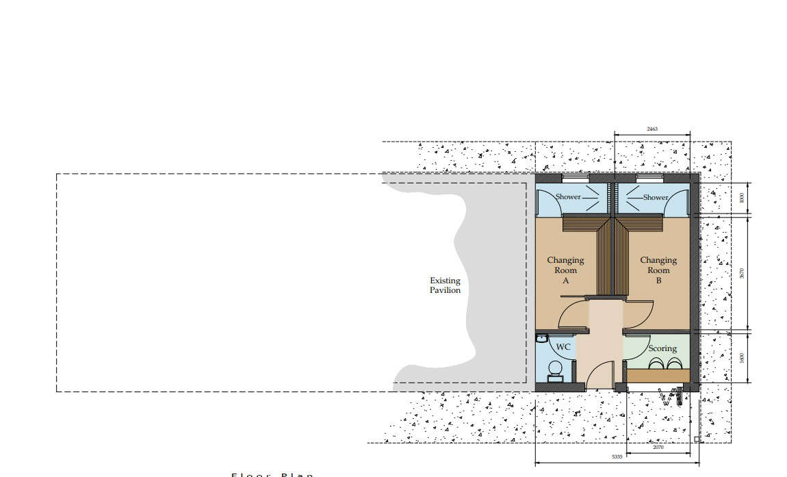 The new side extension to the pavilion at the cricket ground will have an eaves height of 2.42 metres, a ridge height of 4.6 metres, a width of 5.3 metres and a length of 8.8 metres.