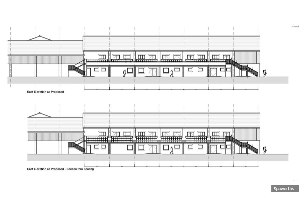 “An external terrace at first-floor level to give additional seating for the hospitality suites overlooking the first team pitch is also proposed,” the plan states.