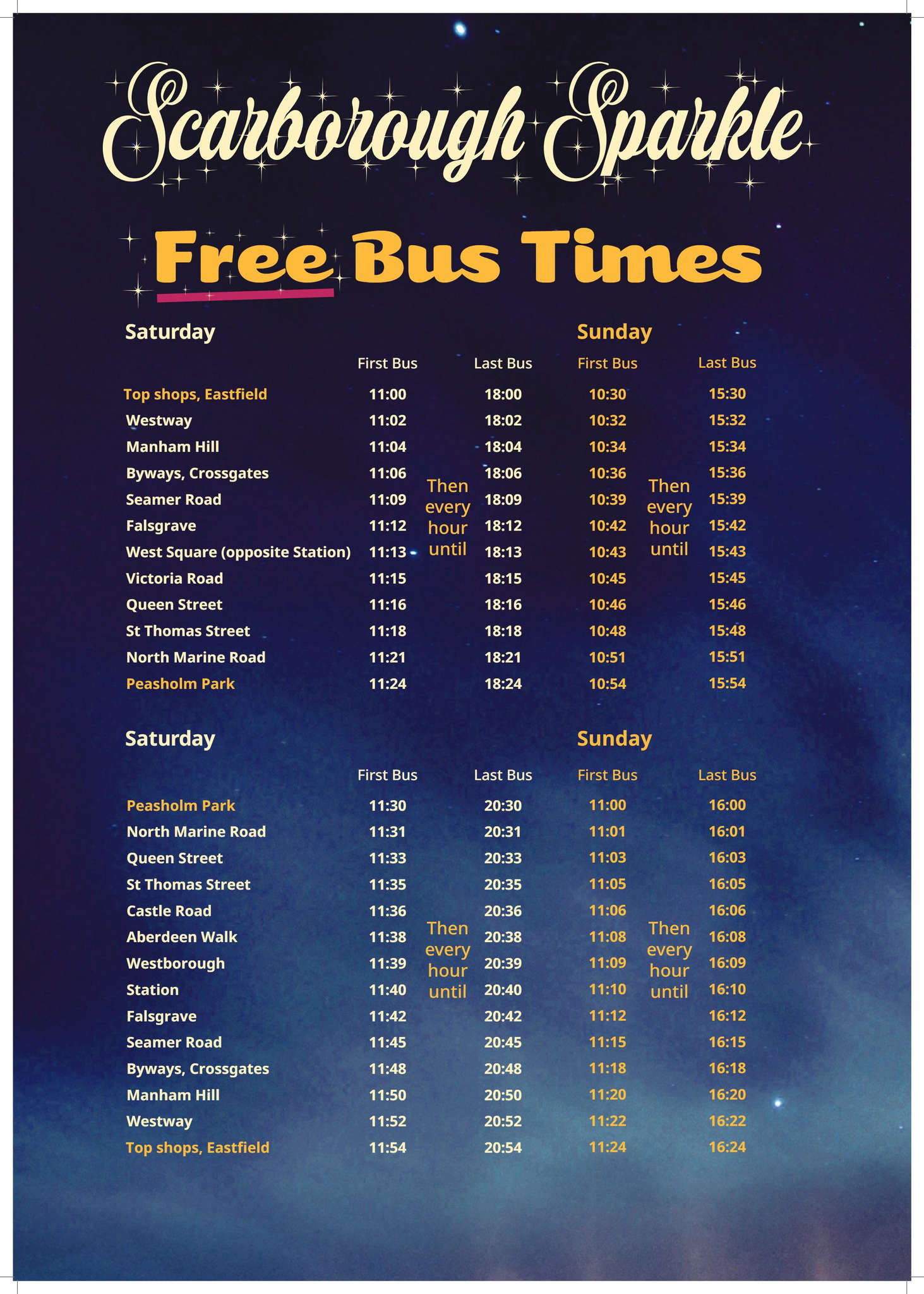 The free bus will operate a return service on Saturday and Sunday from Eastfield, passing through Crossgates, Falsgrave and Scarborough town centre, before arriving at Peasholm Park.