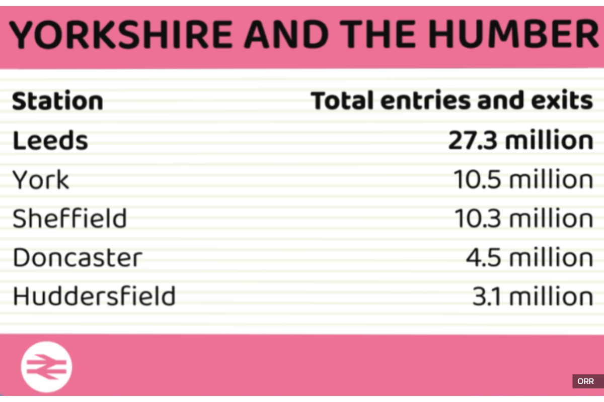 Across Yorkshire as a whole Leeds was the most used station with nearly three times the usage of second place York.
