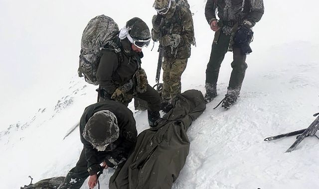The marines created an improvised stretcher using a bivvy sack, ropes, a mat and a jacket, bringing the climber down the mountain to safety.
