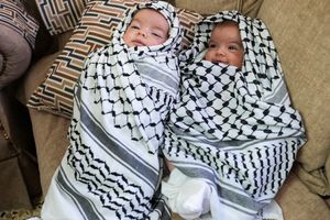West Bank mourners hold aloft baby daughters at funeral procession of father shot dead during Israeli settler attack